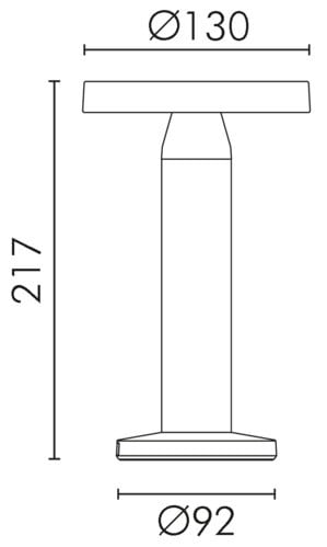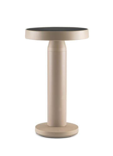 Lampada da tavolo a LED a batteria con pannello solare. Interruttore Touch nella base della lampada. Emissione di luce calda verso il basso. La lampada integra una batteria agli ioni di litio per una durata della carica maggiore. Disponibile nella colorazione Sabbia. Intensità luminosa regolabile (0-100%) tramite pulsante touch. Incluso 1m cavo USB da tipo C a tipo A per collegamento al caricabatteria. ** Caratteristiche Generali ** Alimentazione: A batteria Tempo di vita L70B50: 25000h Numero cicli di accensione: 15000 cicli Rischio fotobiologico: Esente ** Caratteristiche di Illuminazione ** Colore: Bianco caldo Flusso: 160lm CRI: 80 ** Caratteristiche Elettriche ** Potenza: 2W Alimentatore: Esterno (non incluso) ** Caratteristiche Sorgente Luminosa ** Tipo Alimentazione: Corrente Costante Temp. Colore: 2700K ** Caratteristiche Meccaniche ** Altezza: 217mm Diametro: ø130mm Grado di protezione: IP44 Materiale corpo: Alluminio verniciato Diffusore: Policarbonato opaco ** Caratteristiche Termiche ** Temp. di funzionamento: 0 / 30°C ** Caratteristiche Batteria ** Pacco batteria incluso: Li-Ion 18650 2000mAh Durata: 6h (100% luminosità), 10h (50% luminosità) Tempo di ricarica: 7h luce solare, 5h (5V 2A) ** Caratteristiche Pannello solare ** Potenza:1.3W Tensione Voc: 5,5V ** Modalità di funzionamento ** Singolo click: ON/OFF Pressione prolungata: Dimmerazione 5-100% ** Contenuto confezione: ** - Lampada a batteria portatile; - Cavo USB C - USB A 1m; - Istruzioni Nota: caricabatteria consigliato (non incluso) 5Vdc 2,1A.