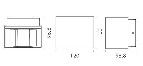 ** Caratteristiche Generali ** Tempo di vita L70B50: 30000h Numero cicli di accensione: 15000 cicli Rischio fotobiologico: Esente ** Caratteristiche di Illuminazione ** Colore: Bianco naturale Flusso: 830lm CRI: 80 Angolo di emissione: 120° Starting time: 0.2s ** Caratteristiche Elettriche ** Potenza: 10W Fattore di potenza PF: 0.9 Tens. funzionamento AC: 230Vac (200‑240Vac) Tolleranza d'ingresso: -10% +6% Dimmerabile: no Classe isolamento: I Alimentatore: Integrato ** Caratteristiche Sorgente Luminosa ** Temp. Colore: 4000K ** Caratteristiche Meccaniche ** Lunghezza: 96.8mm Larghezza: 120mm Altezza: 100mm Fissaggio: Tramite viti Grado di protezione: IP65 Resistenza agli urti: IK06 Materiale corpo: Alluminio verniciato Colore corpo: Bianco Cornice: Alluminio verniciato Orientabile: no ** Caratteristiche Termiche ** Temp. di funzionamento: -10 / 40°C Angolo di emissione: Regolabile da 0° a 120°
