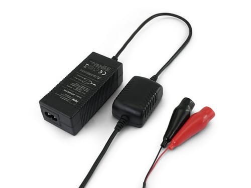 ** Descrizione ** Caricabatterie adatto per pacchi batterie al litio da 7 celle 25,9V nominali da 1,5Ah minimo. ** Caratteristiche Generali ** Costruzione: desktop Classe isolamento: II Adatto per batterie: Li-Ion ** Caratteristiche Elettriche ** Tensione d'ingresso: 100‑240Vac Frequenza: 50/60Hz Tensione d'uscita: 25.9V Corrente d'uscita: 1500mA Tensione d'uscita: 29.4V Protezioni: sovratensione, sovratemperatura, corto circuito, inversione ** Caratteristiche Meccaniche ** Dimensioni (LxWxH): 99 x 44 x 31mm Raffreddamento: passivo Colore: Nero Connessioni: connettore fisso Connettori: Pinze ** Caratteristiche Termiche ** Temperatura di lavoro: -20/40°C ** Cavo d'ingresso ** Separato da 1,5m - da spina europa a spina IEC320-C8 Assicurarsi chele caratteristiche del caricabatteria siano compatibili con le specifiche delle batterie da ricaricare. Eventuali anomalie non possono essere imputate al caricabatteria