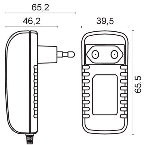** Caratteristiche Generali ** Tecnologia: switching Costruzione: plugin Tipo regolazione: CV Classe isolamento: II Grado Protezione: IP20 ** Caratteristiche Elettriche ** Tensione d'ingresso: 100‑240Vac Tolleranza d'ingresso: -10% +6% Frequenza: 50/60Hz Potenza: 12W Tensione d'uscita: 12V Corrente d'uscita: 1000mA Regolazione di carico: ±5% Regolazione di linea: ±5% Tolleranza tensione d'uscita: ±5% Ripple: