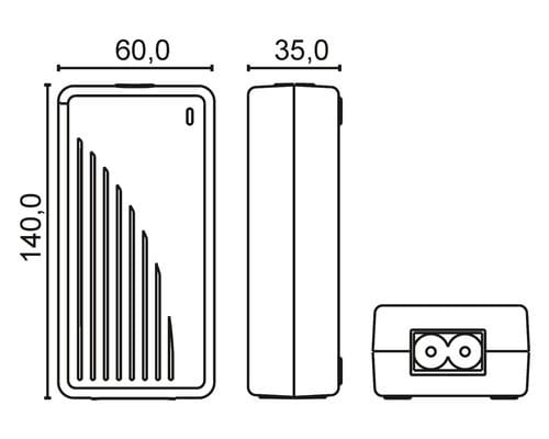 ** Caratteristiche Generali ** Tecnologia: switching Costruzione: desktop Tipo regolazione: CV Classe isolamento: II Grado Protezione: IP20 ** Caratteristiche Elettriche ** Tensione d'ingresso: 100‑240Vac Tolleranza d'ingresso: -10% +6% Frequenza: 50/60Hz Potenza: 60W Tensione d'uscita: 12V Corrente d'uscita: 5000mA Regolazione di carico: ±5% Regolazione di linea: ±5% Tolleranza tensione d'uscita: ±5% Ripple: