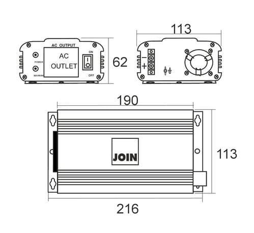 Adatto per carichi resistivi. Inverter adatto per impianto fotovoltaico ad isola (stand-alone). ** Caratteristiche Generali ** Tipologia inverter: semplice Raffreddamento: Convezione forzata - ventola automatica ** Caratteristiche Inverter ** Forma d'onda in uscita: Sinusoidale modificata Frequenza: 50Hz Tensione d'ingresso: 12Vdc Tensione d'uscita: 230Vac Potenza d'uscita di picco: 1500W Potenza d'uscita nominale: 600W Efficienza massima: 80% Corrente in ingresso: 50A Capacità minima batteria: >44Ah Consumo a vuoto in stand by: