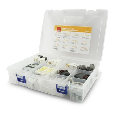 Pratica valigetta contenente un assortimento di accessori RJ45 Keystone, spine e accoppiatori. Ideale per avere a disposizione i componenti più diffusi per il collegamento impianti di reti LAN. Contenuto valigetta: 4pz 96-301N 4pz 96-301-6A-W 4pz 94-914 3pz 94-915/04 2pz 94-930 2pz 94-931 1pz 96-123/2 1pz 96-123 20pz 94-918 4pz 96-120 20pz 94-911/2 10pz 94-923N ** Caratteristiche Generali ** Tema: RJ45 Keystone, spine e accoppiatori Tutti i keystone inclusi nel kit sono compatibili con gli adattatori delle principali marche.