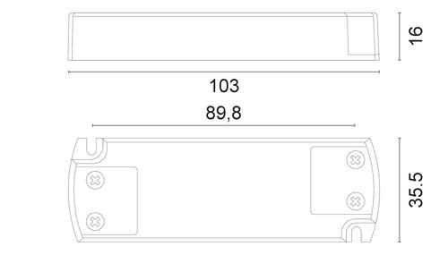** Caratteristiche Generali ** Tipo regolazione: CV Classe isolamento: II Correzione PF: Con PFC Dimmerabile: no Grado Protezione: IP20 ** Caratteristiche Elettriche ** Tensione d'ingresso: 220‑240Vac Tolleranza d'ingresso: -10% +6% Frequenza: 50/60Hz Fattore di potenza: >0.65 Potenza: 20W Tensione d'uscita: 24V Corrente d'uscita: 833mA Regolazione di carico: ±2% Regolazione di linea: ±1% Protezioni: sovraccarico, sovratensione, corto circuito ** Caratteristiche Meccaniche ** Dimensioni (LxWxH):103 x 35.5 x 16mm Raffreddamento: passivo Peso: 0.08kg Materiale contenitore: Plastico Colore: Bianco Connessioni: morsetti a vite ** Caratteristiche Termiche ** Temperatura di lavoro: -20/45°C Temperatura involucro: 80°C Temperatura di stoccaggio: -40/85°C