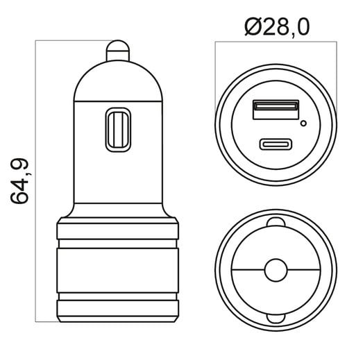 ** Caratteristiche Generali ** Tecnologia: dc-dc switching non isolato Carica rapida: Power Delivery 3.0 ** Caratteristiche Elettriche ** Collegamento interno: negativo comune Tensione d'ingresso: 12‑24Vdc Potenza: 30W Corrente d'uscita: 3000mA Tensione d'uscita: 5 - 12V Regolazione di carico: ±5% Tolleranza tensione d'uscita: ±10% Protezioni: corto circuito ** Caratteristiche Meccaniche ** Dimensioni (LxWxH): 64.9 x 28 x 28mm Raffreddamento: passivo Materiale contenitore: Plastico Colore: Nero Connettori: USB tipo"A", USB tipo"C" ** Caratteristiche Termiche ** Temperatura di lavoro: 0/30°C