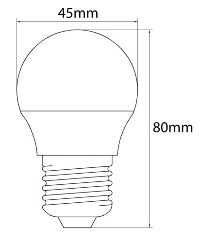 ** Caratteristiche Generali ** Tipo lampada: Mini-Bulbo Tempo di vita L70B50: 15000h Numero cicli di accensione: 10000 cicli Fattore di sopravvivenza: 0.9 Rischio fotobiologico: Esente ** Caratteristiche di Illuminazione ** Colore: Bianco caldo Flusso: 710lm CRI: 80 Starting time: 0.2s Fattore mantenimento flusso: 0.96 Uniformità colore (SDCM): 6 ** Caratteristiche Elettriche ** Classe energetica: F Potenza: 8W Fattore di sfasamento DF: 0.5 Tens. funzionamento AC: 230Vac Tolleranza d'ingresso: ±10% Frequenza: 50-60Hz Dimmerabile: no ** Caratteristiche Sorgente Luminosa ** Temp. Colore: 3000K ** Caratteristiche Meccaniche ** Attacco: E27 Lunghezza: 45mm Larghezza: 45mm Altezza: 80mm Diametro: ø45mm Colore corpo: Bianco Diffusore: Policarbonato opaco ** Caratteristiche Termiche ** Temp. di funzionamento: -10 / 40°C