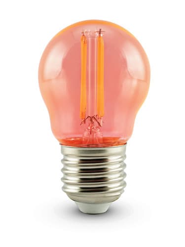 ** Caratteristiche Generali ** Tipo lampada: Mini-Bulbo Tempo di vita L70B50: 20000h Numero cicli di accensione: 10000 cicli Tipo di led: Filamento Rischio fotobiologico: Esente ** Caratteristiche di Illuminazione ** Colore: Rosa CRI: 80 Angolo di emissione: 360° Starting time: 0.2s ** Caratteristiche Elettriche ** Potenza: 4.5W Tens. funzionamento AC: 230Vac Tolleranza d'ingresso: ±10% Frequenza: 50-60Hz Dimmerabile: no ** Caratteristiche Meccaniche ** Attacco: E27 Altezza: 80mm Diametro: ø45mm Diffusore: Vetro colorato ** Caratteristiche Termiche ** Temp. di funzionamento: -10 / 40°C