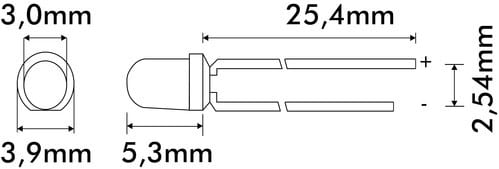** Caratteristiche Generali ** Tipo di led: 3mm ** Caratteristiche di Illuminazione ** Colore: Bianco caldo Intensità luminosa: 5000mcd Angolo di emissione: 25° ** Caratteristiche Elettriche ** Corrente ingresso max: 20mA Tens. funzionamento DC: 3.2Vdc(3‑3.6Vdc) ** Caratteristiche Sorgente Luminosa ** Temp. Colore: 3000K ** Caratteristiche Meccaniche ** Numero di pin: 2 Diametro: ø3mm Colore corpo: Trasparente ** Caratteristiche Termiche ** Temp. di funzionamento: -10 / 70°C