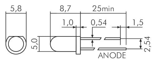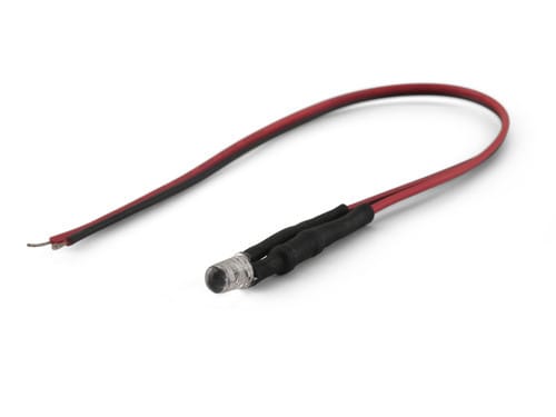 ** Caratteristiche Generali ** Tipo di led: 5mm ** Caratteristiche di Illuminazione ** Colore: Rosso Intensità luminosa: 13000mcd ** Caratteristiche Elettriche ** Corrente ingresso max: 20mA Tens. funzionamento DC: 24Vdc (21.6‑26.4Vdc) Tolleranzad'ingresso: ±10% ** Caratteristiche Meccaniche ** Diametro: ø5mm Foro incasso: ø5mm Connessioni: Cavo libero ** Caratteristiche Termiche ** Temp. di funzionamento: -10 / 40°C Lunghezza cavi: 25cm