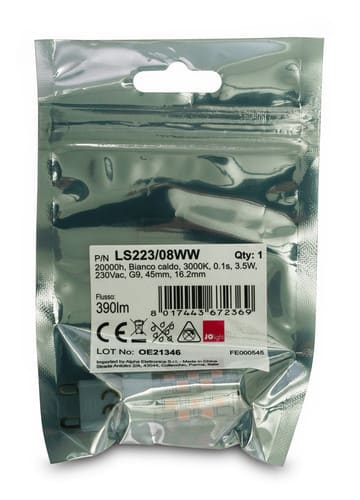 ALPHA ELETTRONICA SR - ALPLS223/08WW LAMP.LED G9 230VAC 3.5W 3000K ERP