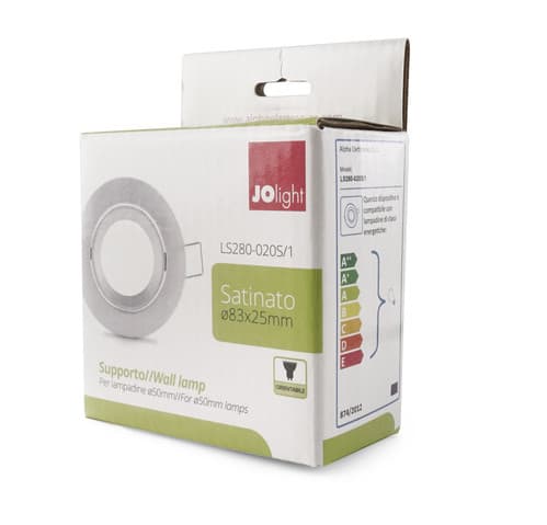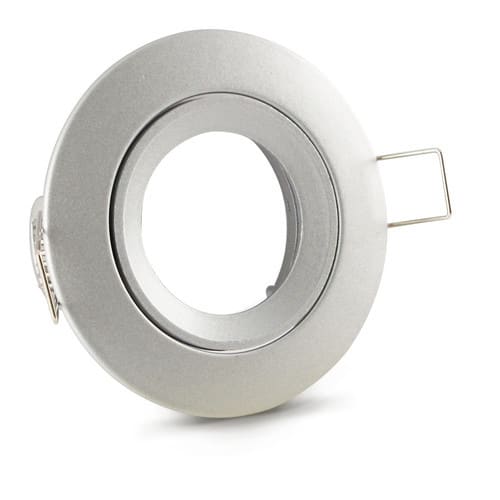 Caratteristiche Porta lampada professionale in metallo adatto per installazioni da incasso. Fissaggio lampada tramite ghiera a scatto. Rotazione: -35° +35° Adatto per uso interno. ** Caratteristiche Elettriche ** Potenza max installabile: 50W **Caratteristiche Meccaniche ** Altezza: 25mm Diametro: ø83mm Foro incasso: ø75mm Materiale corpo: Zamak (Zinco-Alluminio) Colore corpo: Satinato Finitura: Opaca Orientabile: si