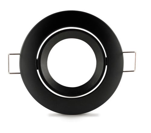 Caratteristiche Porta lampada professionale in metallo adatto per installazioni da incasso. Fissaggio lampada tramite ghiera a scatto. Rotazione: -35° +35° Adatto per uso interno. ** Caratteristiche Elettriche ** Potenza max installabile: 50W **Caratteristiche Meccaniche ** Altezza: 25mm Diametro: ø83mm Foro incasso: ø75mm Materiale corpo: Zamak (Zinco-Alluminio) Colore corpo: Nero Finitura: Opaca Orientabile: si