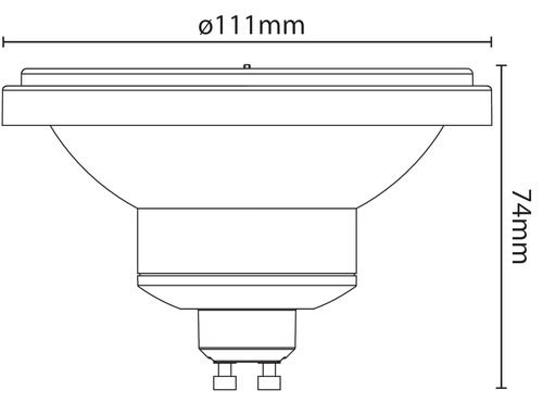 ** Caratteristiche Generali ** Tipo lampada: AR111 Tempo di vita L70B50: 15000h Numero cicli di accensione: 10000 cicli Fattore di sopravvivenza: 0.9 Rischio fotobiologico: Esente ** Caratteristiche di Illuminazione ** Colore: Bianco caldo Flusso: 1100lm CRI: 80 Angolo di emissione: 35° Starting time: 0.2s Fattore mantenimento flusso: 0.96 Uniformità colore (SDCM): 6 ** Caratteristiche Elettriche ** Classe energetica: F Potenza: 13W Fattore di sfasamento DF: 0.7 Tens. funzionamento AC: 230Vac Tolleranza d'ingresso: ±10% Frequenza: 50-60Hz Dimmerabile: no ** Caratteristiche Sorgente Luminosa ** Temp. Colore: 3000K ** Caratteristiche Meccaniche ** Attacco: GU10 Lunghezza: 111mm Larghezza: 111mm Altezza: 75mm Diametro: ø111mm Colore corpo: Bianco ** Caratteristiche Termiche ** Temp. di funzionamento: -10 / 40°C