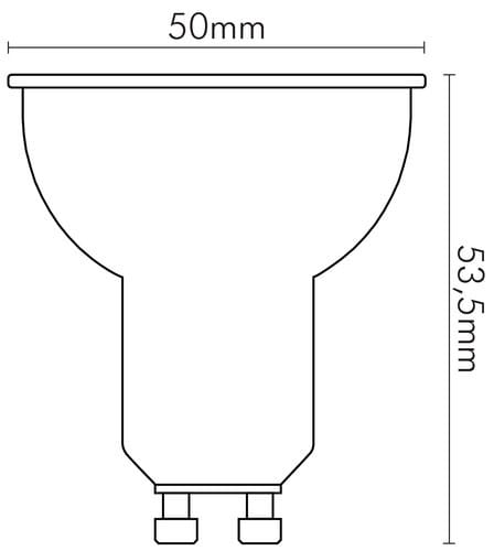 ** Caratteristiche Generali ** Tipo lampada: PAR16 Tempo di vita L70B50: 15000h Numero cicli di accensione: 10000 cicli Fattore di sopravvivenza: 0.9 Rischio fotobiologico: Esente ** Caratteristiche di Illuminazione ** Colore: Bianco naturale Flusso: 620lm CRI: 80 Angolo di emissione: 105° Starting time: 0.1s Fattore mantenimento flusso: 0.93 Uniformità colore (SDCM): 6 ** Caratteristiche Elettriche ** Classe energetica: E Potenza: 6W Fattore di sfasamento DF: 0.5 Tens. funzionamento AC: 230Vac Tolleranza d'ingresso: ±10% Frequenza: 50-60Hz Dimmerabile: no ** Caratteristiche Sorgente Luminosa ** Temp. Colore: 4000K ** Caratteristiche Meccaniche ** Attacco: GU10 Lunghezza: 50mm Larghezza: 50mm Altezza: 54mm Diametro: ø50mm Colore corpo: Bianco Diffusore: PMMA trasp. ** Caratteristiche Termiche ** Temp. di funzionamento: -10 / 40°C