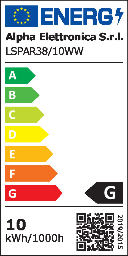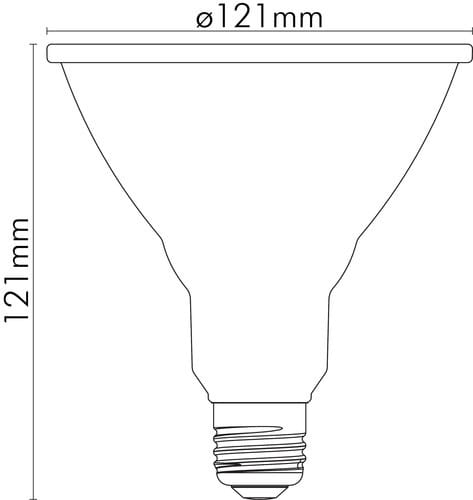 ** Caratteristiche Generali ** Tipo lampada: PAR38 Tempo di vita L70B50: 15000h Numero cicli di accensione: 10000 cicli Fattore di sopravvivenza: 0.9 Rischio fotobiologico: Esente ** Caratteristiche di Illuminazione ** Colore: Bianco caldo Flusso: 680lm CRI: 80 Angolo di emissione: 60° Starting time: 0.2s Fattore mantenimento flusso: 0.96 Uniformità colore (SDCM): 6 ** Caratteristiche Elettriche ** Classe energetica: G Potenza: 10W Fattore di sfasamento DF: 0.7 Tens. funzionamento AC: 230Vac Tolleranzad'ingresso: ±10% Frequenza: 50-60Hz Dimmerabile: no ** Caratteristiche Sorgente Luminosa ** Temp. Colore: 3000K ** Caratteristiche Meccaniche ** Attacco: E27 Lunghezza: 121mm Larghezza: 121mm Altezza: 121mm Diametro: ø121mm Colore corpo: Bianco Diffusore: Policarbonato opaco ** Caratteristiche Termiche ** Temp. di funzionamento: -10 / 40°C