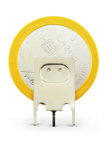 ** Caratteristiche Generali ** Codice dimensione: DL2450, 5029LC, E-CR2450 Tecnologia: Litio Codice IEC: CR2450 Codice Neda: 5029LC Ricaricabile: no ** Caratteristiche Elettriche ** Tensione: 3V Capacità: 560mAh ** Caratteristiche Meccaniche ** Interasse contatti (C): 10.2mm Dimensioni: ø24.5mm x 5mm Connessioni: pin per PCB