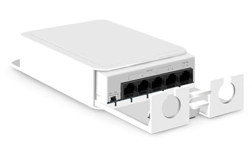 L'extender PoE è un dispositivo per estendere la distanza di trasmissione dell'alimentazione PoE e dei dati Ethernet tramite cavo LAN fino a 100m per dispositivi compatibili con questa tecnologia. Abilitando la funzione VLAN (Virtual Local Area Network) è possibile estendere la distanza da 100m a 250m (sulle porte 3-4-5). La tecnologia PoE assicura che l'alimentazione viene inviata solo ai dispositivi compatibili; i dispositivi non PoE ricevono solo i dati. Questo ripetitore non richiede alimentazione aggiuntiva, viene alimentato direttamente dall'ingresso PoE. Il design senza ventola lo rende ideale per un funzionamento affidabile e silenzioso. ** Connettività ** Tipologia: Fast Ethernet Tecnologia: Unmanaged Velocità porte LAN: 10/100Mbps Network media: 10/100/1000 BASE-TX Cavo UTP rame puro Cat.5e o superiore Dimensioni Tabella MAC: 1000 PoE Input: 44-57Vdc 90W (P5) PoE Output: 44-57Vdc 90W (P1-2-3 30W) (P4 60W MCU) Distanza trasmissione Input: 100 Distanza trasmissione Output: 100m (VLAN OFF), 250mP1-2-3 100m P4 (VLAN ON) Consumo stand-by: 1W Funzioni: Installazione Plug&Play, Modalità TVCC, PoE, Supporto VLAN Standard: IEEE 802.3, IEEE 802.3u, IEEE 802.3x Standard PoE : IEEE802.3AF/AT Potenza PoE totale max : 90W ** Numero porte ** Totale porte:5 ** Caratteristiche meccaniche ** Montaggio: Parete Materiale contenitore : Plastico Colore : Bianco Indicazioni Led: Alimentazione dispositivo, Stato di ciascuna porta Raffreddamento : Passivo Dimensioni: 35mm x 101mm x 152mm Grado di protezione: IP55 Peso: 160g ** Contenuto confezione ** - 1 x PoE Extender