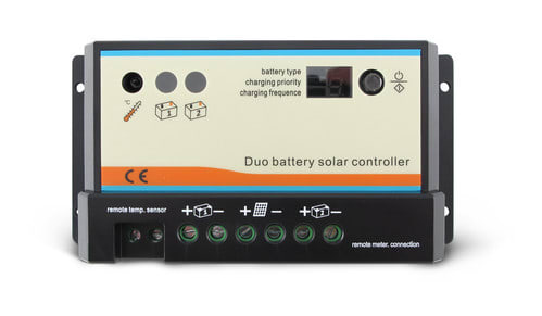 ** Caratteristiche generali ** Regolatore di carica con gestione di due batterie. Due connesioni per due batterie. Nessuna connessione di carico "Load". Indicazione delle impostazioni dell'impianto tramite LCD remoto (non incluso). Modalità di carica PWM(modalità larghezza d'impulso). Selezione del tipo di batteria tramite pulsante e indicazione led. Visualizzazione stato di carica della batteria. Selezione priorità di ricarica delle batterie, è cioè possibile selezionare la percentuale di carica da trasferire sulla batteria 1, il regolatore caricherà la batteria 2 con la percentuale di carica rimanente. Compensazione in temperatura della carica. Il display remoto opzionale RHD-REM1 consente di visualizzare la carica, lo stato e le eventuali anomalie dientrambe le batterie. Si consiglia l'utilizzo di pannelli specifici per applicazioni ad isola a bassa tensione. Collegamento interno con negativo comune. ** Caratteristiche Generali ** Tensione di Sistema Nominale: 12V, 24V Corrente di ricarica max: 10A Tensione massima pannelli: 43Vdc Potenza massima pannelli (batt. 12V): 120W Potenza massima pannelli (batt. 24V): 240W Collegamento interno: Positivo comune Display Interno: Display LED 7 segmenti, Indicatori Led Parametri configurabili: Percentuale di carica batteria principale, Percentuale di carica batteria secondaria ** Caratteristiche Meccaniche ** Materiale contenitore: Plastico Grado di protezione: IP20