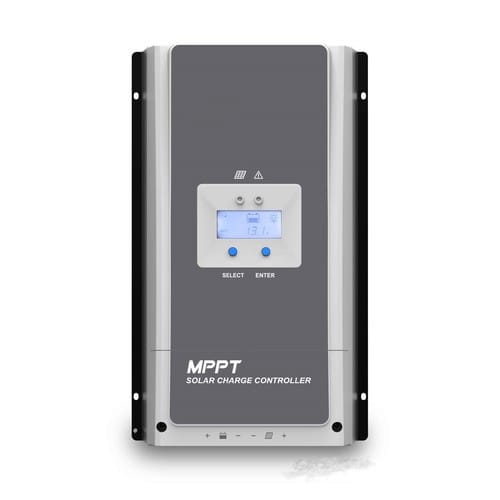 Regolatore di carica MPPT per utilizzo in impianti ad isola stand-alone (off-grid) con batteria 12, 24, 36 o 48V. I parametri di carica sono configurabili per batterie piombo e litio LiFePO4. Efficienza di inseguimento MPPT superiore al 99,5% Massima efficienza di conversione della carica fino al 98% Supporta batterie al piombo e agli ioni di litio Messa a terra con negativo comune Potenza di carica con limitazione della corrente Funzione di declassamento della potenza di carica ad alta temperatura Tre contatti relè per esigenze diverse: rete, generatore e carico Supporta fino a 6 unità in parallelo Supporta sensori remoti di temperatura e tensione RS-485 isolata con 5VDC/200mA e protocollo MODBUS ** Caratteristiche Generali ** Tensione di Sistema Nominale: 12V, 24V, 36V, 48V Corrente di ricarica max: 60A Tensione batteria min: 8Vdc Tensione batteria max: 68Vdc Collegamento interno: Negativo comune Compensazione di temperatura: Si Comunicazione: Modbus su RS485 Display Interno: Display LCD Display Remoto: Si Parametri configurabili: Tensione di sgancio carico, Tensione di riaggancio carico ** Caratteristiche Meccaniche ** Peso: 4.5kg Materiale contenitore: Plastico Grado di protezione: IP20
