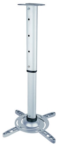 Supporto a soffitto per proiettori. Estensione da 40 a 62cm. ** Caratteristiche Generali ** Tipologia montaggio: Da soffitto Rotazione (Pivot): 0° Inclinazione (Tilt): 30° Orientamento (Swivel): 360° Colore: Grigio ** Caratteristiche Meccaniche ** Avanzamento TV: Manuale Materiale: Alluminio e acciaio Dimensioni (WxH): 182mm x 620mm Distanza dal muro: 40cm Portata: 15Kg Peso prodotto: 2Kg Bolla di livello: No Sistema di bloccaggio: No Gestione cavi: Si Innesto a baionetta: No Kit di montaggio: Incluso