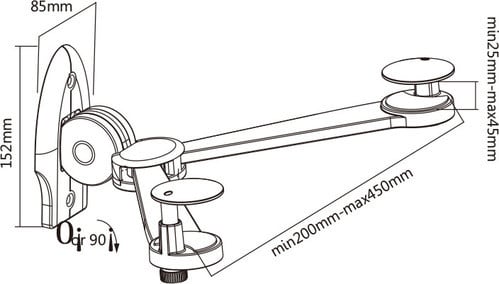 Supporto da muro pieghevole in plastica. Adatto per appoggiare un dispositivo audio-video alto 24-45mm e largo 200-450mm. ** Caratteristiche Generali ** Tipologia montaggio: Da parete Estensione: Nessuna Rotazione (Pivot): 0° Orientamento (Swivel): 0° Colore: Nero ** Caratteristiche Meccaniche ** Portata: 3Kg Bolla di livello: No Sistema di bloccaggio: No Gestione cavi: No Innesto a baionetta: No Kit di montaggio: Incluso
