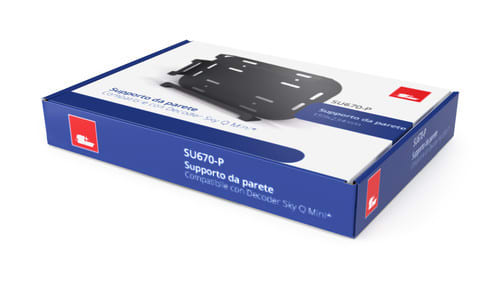** Caratteristiche Generali ** Tipologia montaggio: Da parete Compatibilità VESA: 100x100 Compatibile con: Decoder Sky Q Mini Estensione: Nessuna Rotazione (Pivot): 0° Inclinazione (Tilt): 0° Orientamento (Swivel): 0° Colore: Nero ** CaratteristicheMeccaniche ** Bolla di livello: No Sistema di bloccaggio: No Gestione cavi: No Innesto a baionetta: No Kit di montaggio: Non incluso Il supporto da parete SU670-P è compatibile con il decoder Sky Q mini. Sky® è un marchio registrato di proprietà di società terze, che non hanno alcun collegamento con Alpha Elettronica S.r.l. L’indicazione dello stesso è data solo ed esclusivamente per identificare i decoder compatibili con il supporto da parete.