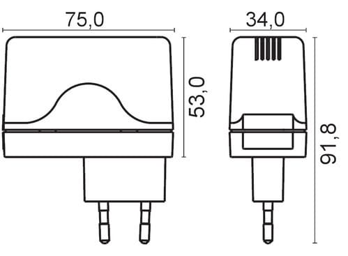 ** Caratteristiche Generali ** Tecnologia: switching Costruzione: plugin Tipo regolazione: CV Classe isolamento: II Grado Protezione: IP20 ** Caratteristiche Elettriche ** Tensione d'ingresso: 230Vac Tolleranza d'ingresso: ±10% Frequenza: 50/60Hz Potenza: 12W Tensione d'uscita: 24V Corrente d'uscita: 500mA Regolazione di carico: ±5% Regolazione di linea: ±5% Tolleranza tensione d'uscita: ±5% Ripple: