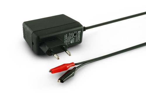 ** Caratteristiche ** Adatto per batterie 24V, capacità compresa da 1,3Ah a 7Ah ** Caratteristiche Generali ** Costruzione: plugin Tipo regolazione: CC + CV Classe isolamento: II Adatto per batterie: 24V Grado Protezione: IP20 ** Caratteristiche Elettriche ** Tensione d'ingresso: 100‑240Vac Frequenza: 50/60Hz Corrente d'uscita: 450mA Tensione d'uscita: 27.6 - 28.6V Tolleranza tensione d'uscita: ±5% Protezioni: sovratemperatura, corto circuito, inversione ** Caratteristiche Meccaniche ** Dimensioni (LxWxH): 80 x 34 x 59mm Raffreddamento: passivo Materiale contenitore: Plastico Colore: Nero Connessioni: connettore fisso Connettori: Pinze ** Caratteristiche Termiche ** Temperatura di lavoro: 0/30°C ** Modalità di carica ** Tipo di carica: Ciclica - Tampone Modalità di carica: a singola fase - tampone Indicazione di carica: Led acceso Indicazione di fine carica: Led spento Batteria non connessa o Stand-by: Led spento Connettore d'uscita: Faston polarizzati. Vedi dettaglio
