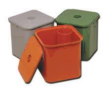 Pozzetto con predisposizione per pali d'illuminazione Ø 60 mm,Fornito con coperchio (classe K3 EN 1253-2 ed. 1998), 4 viti in acciaio INOX, fondo chiuso pre-tranciato e flangia di finitura per palo vetroresina. colore grigio