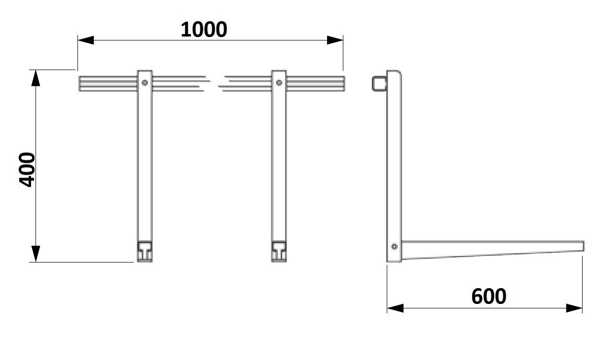 Staffa regolabile in acciaio verniciato con polveri poliestere colore bianco RAL9002, fornita premontata con gommini antivibranti e viteria di fi ssaggio.