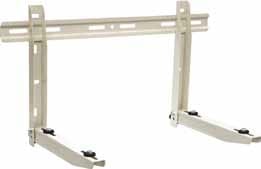 Staffa regolabile in acciaio verniciato con polveri poliestere colore bianco RAL9002, fornita premontata con gommini antivibranti e viteria di fi ssaggio.