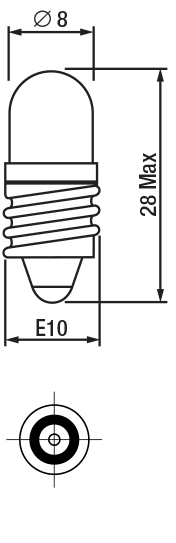 Segnalatore LED. Chip del LED protetto da lente trasparente in resina epossidica, Ø 8 mm. Anello in plastica dello stesso colore della luce emessa dal LED. LED rosso 24/28V E10