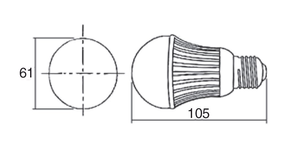 MILD 9: Potenza: 9W. Corrente: 50 mA. Alimentazione: 220V - 240V. Attacco E27. Resa cromatica (CRI): > 72. Angolo diffusione lum.sa: 120°. Dimensioni (Ø - H): 61 x 105 mm. Vita media: 30.000 ore. Illuminazione equivalente: 75W incandescenza. IP 20 per uso all’interno. Temperatura di funzionamento: -30°C +65°C. Isolamento: classe II. Temperatura di colore: 4.000°K (bianco diurno). Flusso luminoso: 840 lm.