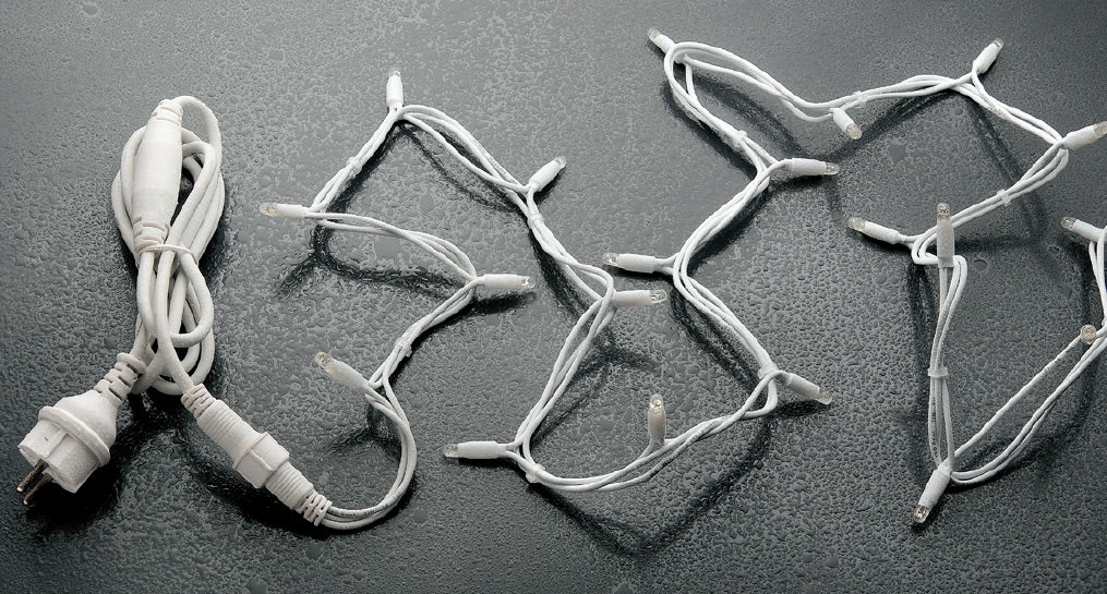 Stringa luminosa, con 40 LED ad alta luminosità e protetti contro gli urti accidentali, costruita secondo le norme EN 60598-2-20:2010. Cavo in gomma H03RN-F - 0,50 mm2, doppio isolamento, autoestinguente, prolungabile tramite connettori. La stringa vienefornita senza cavo d’alimentazione. Cavo di alimentazione in gomma H05RN-F 2x1,0 mm2 corredato di raddrizzatore da 1,6 A, spina Schuko IP 44 e connettore per il collegamento. Colore LED: Blu.
