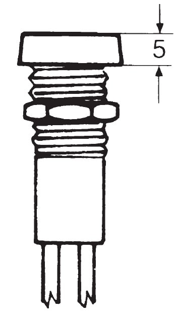 Corpo filettato in policarbonato, completo di rondella zigrinata a vite.Faston 6,3 x 0,8 mm.Gemma alta