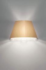 Il design del diffusore in policarbonato trasparente antistatico è arricchito da incisioni verticali interne che, oltre a conferire alla lampada maggior valore estetico, consentono una migliore diffusione della luce. Il diffusore è rivestito da carta pergamena; struttura in metallo verniciato. Interruttore sul corpo lampada. Colore: Trasparente + Naturale