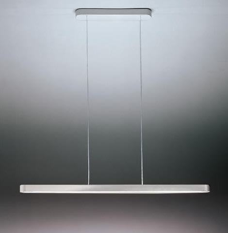 Resina termoplastica, alluminio, policarbonato. Rosone in resina termoplastica; corpo in alluminio verniciato; diffusore inferiore in policarbonato opalino. Lampadina inclusa. I cavetti di sospensione svolgono anche funzione di alimentazione. Emissione: Indiretta Diffondente/diretta. Colore: Argento. Categoria: LED. Numero: 1. Watt: 60W. Flusso Luminoso (lm): 7920lm. Temperatura Colore (K): 3000K. Starter: Electronico Dimmerabile Dsi incluso.