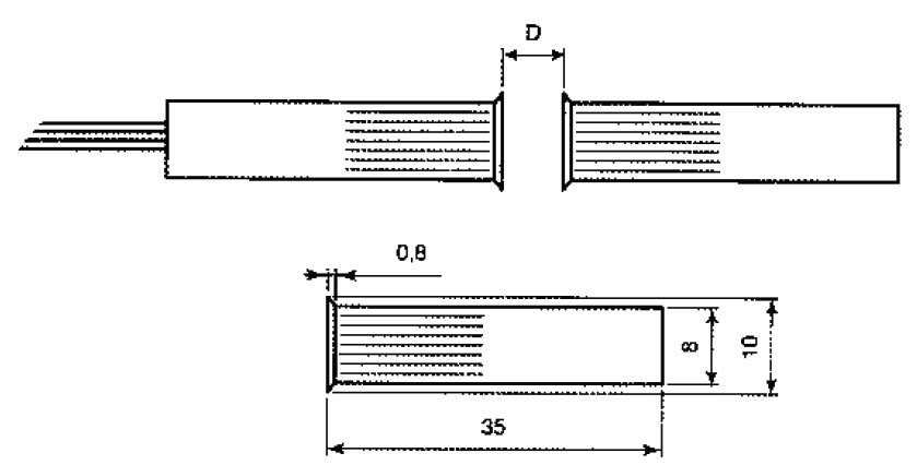 Contatto magnetico cilindrico in ottone. Ampia distanza di intervento. Adatto per porte e finestre in alluminio, legno e PVC. Connessione a filo. Con loop filo antimanomissione (tamper). D max(non su ferro): 9mm. Tipo di contatto: scambio. Corrente max:300mA. Potenza max: 3W. N° fili: 5. Lunghezza cavo: 0.3m