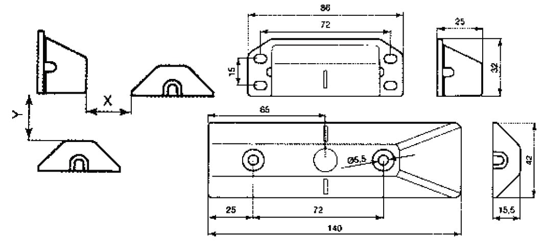 Contatto magnetico per porte basculanti. Fissaggio a pavimento. In alluminio pressofuso. Connessione a filo. Con loop filo antimanomissione (tamper). Con guaina protezione cavo