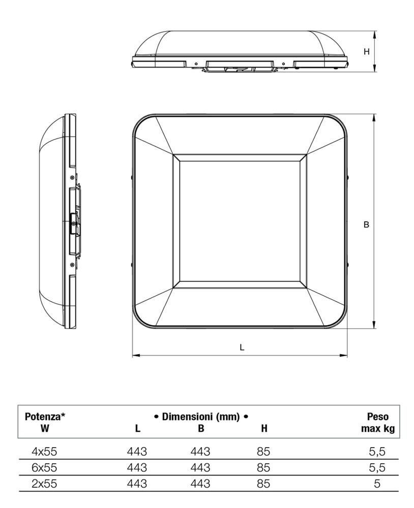 Adatto per montaggio a soffitto: