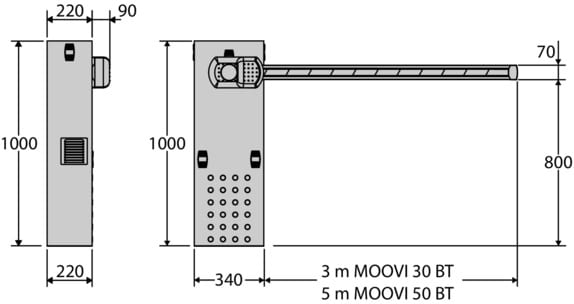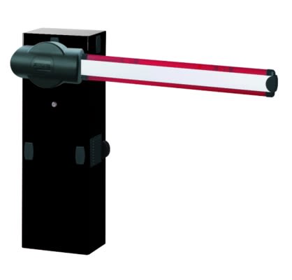 Barriera con motore a 230 V per passaggio utile fino a 6 m e tempo di apertura 8 sec. Reazione all'urto tramite .Colore grigio RAL 7015