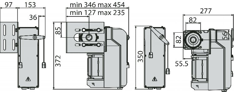 Operatore elettromeccanico, uomo presente, per porte industriali sezionali con superficie max 25 m² ed impiego semi-intensivo. Alimentazone 230 V. velocità max 24 rpm. coppia max 70 Nm. sblocco a catena. ip54