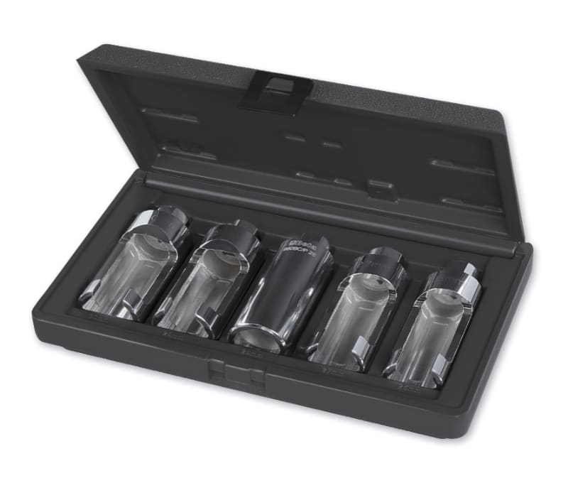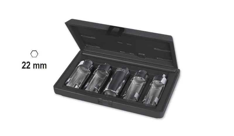 Incluse nel kit: ? 1 bussola esagonale aperta da 25 mm ? 1 bussola esagonale aperta da 27 mm ? 1 bussola esagonale aperta da 29 mm ? 1 bussola esagonale aperta da 30 mm ? 1 bussola poligonale da 28 mm ? 280x160x55 mm - ? 1,9 kg