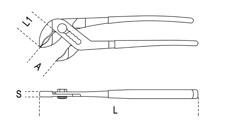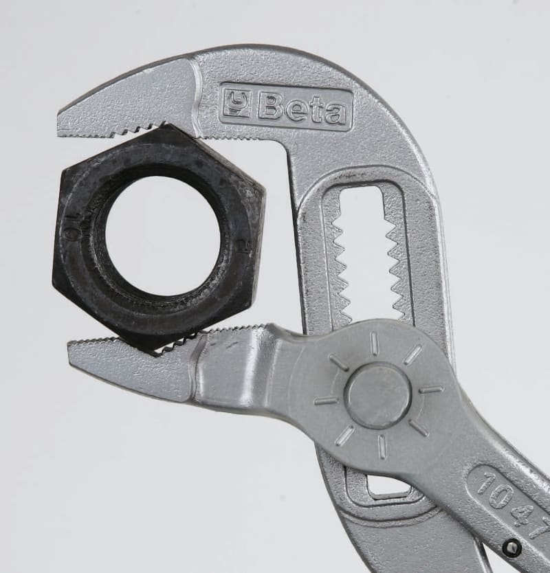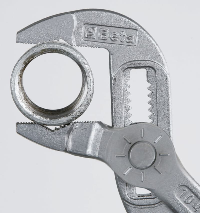 Caratteristiche: ? Regolazione rapida e precisa mediante la pressione del pulsante ? Nessuno spostamento accidentale della regolazione ? Trattamento termico localizzato sulle ganasce ? Profilo adatto alla presa di dadi ? Dentatura autobloccante per tubi