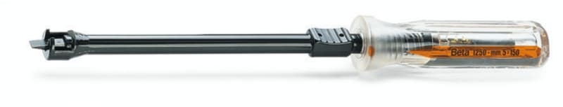 La guaina in plastica termostampata, caricata da una molla e manovrata con il pollice, trattiene la vite sulla lama. Una volta inserita la vite nella sua sede, la guaina si svincola e si ultima la manovra di serraggio con lo stesso utensile.