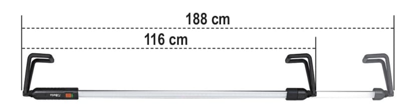 Caratteristiche ? 3 intensita luminose: 500/1000/2000 lumen ? Orientabile a 360? ? Lunghezza variabile: 116 ? 188 cm ? Corpo in alluminio ? Ganci in gomma antiscivolo ? Ricarica con attacco USB-C ? 2 modalita di ricarica, tramite presa USB della lampada o della batteria interna ? Fornita con caricabatterie: input: 100-240V ~ 50/60Hz output: DC 5V - 2000 mA ? Autonomia pari a 3-9 h ? Batteria inclusa ? Classe di protezione IP20 e IK07