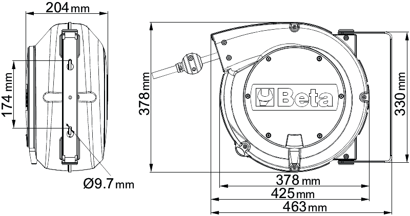 Caratteristiche: ? Pressione di utilizzo massima 15 bar ? Tubo in Poliuretano retinato ? Struttura in Polipropilene ? Dispositivo automatico di arresto del tubo alla lunghezza desiderata ? Cremagliera disinseribile per tubo sempre in trazione ? Temperatura di utilizzo -5?C/+50?C ? Fornito con staffa orientabile di 180? e seconda staffa a incastro rapido