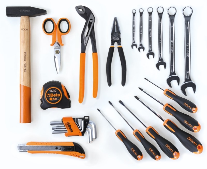 Valigetta porta attrezzi in tessuto ad alta resistenza. Caratteristiche: ? Doppia maniglia superiore per una presa ottimale ? Ampia tasca frontale porta documenti con chiusura a zip ? Fascia velcrata nella parte posteriore per fissare la valigetta alla maniglia dei trolley ? 20 pratici vani portautensili (6 tasche e 14 elastici) ? Asole porta martello ? Possibilita di applicazione della tracolla C9/RT (da ordinare a parte) ? Dimensioni/peso valigetta: 380x290x60 mm/ 675 g ? Assortimento inclusodi 27 utensili per interventi universale