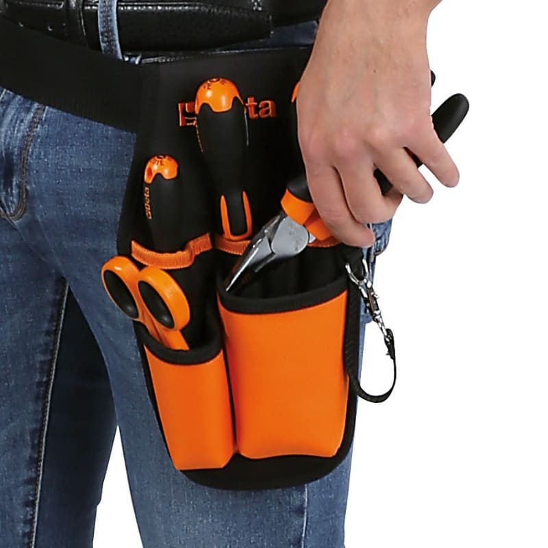 Caratteristiche: ? Cinque ampie tasche portautensili ? Una taschina frontale porta forbice ? Fibbia con moschettone porta nastro adesivo ? Cintura regolabile da 70 a 120 cm ? 155x285x80 mm