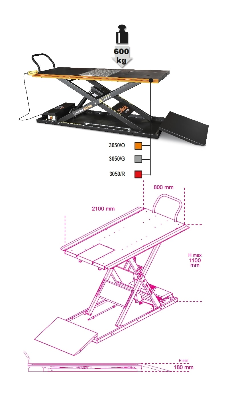 Caratteristiche tecniche: ? Sicurezze elettriche, meccaniche e idrauliche ? Portata: 600 kg ? Centralina elettroidraulica integrata: 230V - 50 Hz ? Pompa idraulica ? Velocita di discesa controllata ? Fusibili di sicurezza in caso di tranciatura del cavo ? Pulsantiera di comando ? Certificato ? omologato TUV